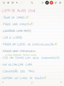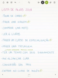 Eu peguei minha lista e me surpreendi com a quantidade de coisas que foram conquistadas e eu nem percebi. Tenho certeza que você também vai se surpreender. Ao lado das metas conquistadas coloque um “OK”. Alguns itens você só vai saber no final do ano, deixe esses guardadinhos ai!