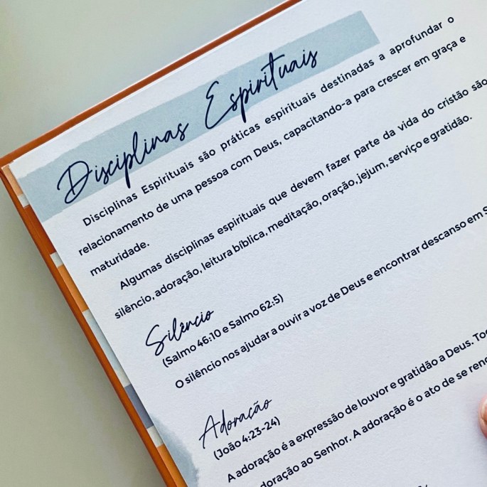 O journal contém artigos, exemplos e exercícios que te ensinam sobre: disciplinas espirituais, o que é devocional, como fazer o seu devocional, como interpretar a Bíblia, como ser constante, dentre várias outras coisas.